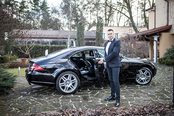Oferujemy usługę wynajmu Mercedesa CLS wraz z elegancko ubranym kierowcą na terenie woj. Mazowieckiego.