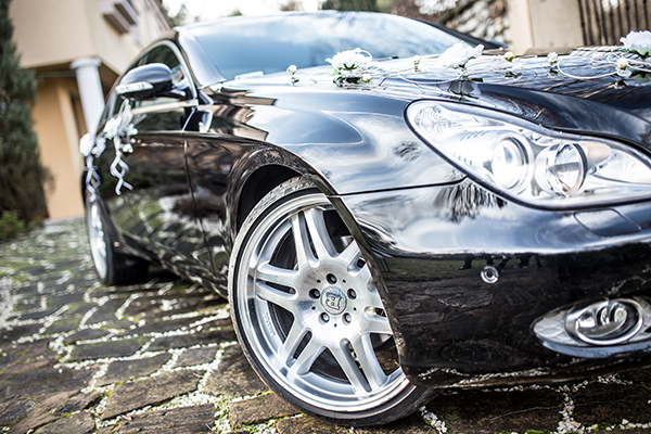 - przystrój samochodu: dekoracja na klamkach, masce oraz tablice rejestracyjne MŁODA PARA i NOWOŻEŃCY.